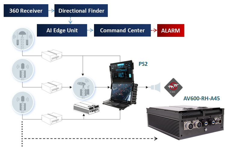 The rise of commercial and military drones increases risks to critical infrastructure, bases, and no-fly zones. The NV200 GPU computer runs advanced AI models, including CNNs and object tracking, to identify drone threats, track them in real time, pinpoint coordinates, and forecast flight paths. Linked to a Command & Control center, it delivers live data for rapid threat evaluation and engagement decisions.