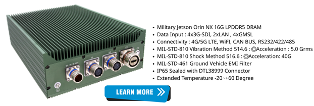 NV300 is an ultra-compact MIL-SPEC rugged edge computer built on a Modular Open Systems Approach (MOSA), integrating the NVIDIA® Jetson AGX Orin for up to 275 TOPS AI performance. SWaP-optimized for space-limited platforms, it supports advanced autonomous and unmanned missions in harsh environments.