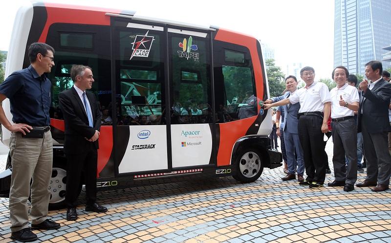 Taipei Mayor Ko Wen-je (柯文哲) advised the public not to panic if they happen to see the driverless vehicle EZ10 moving on the street.