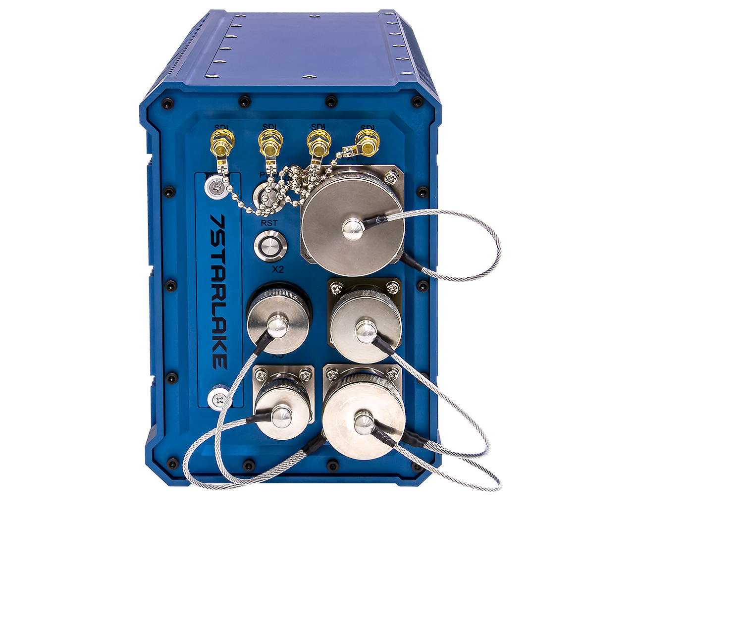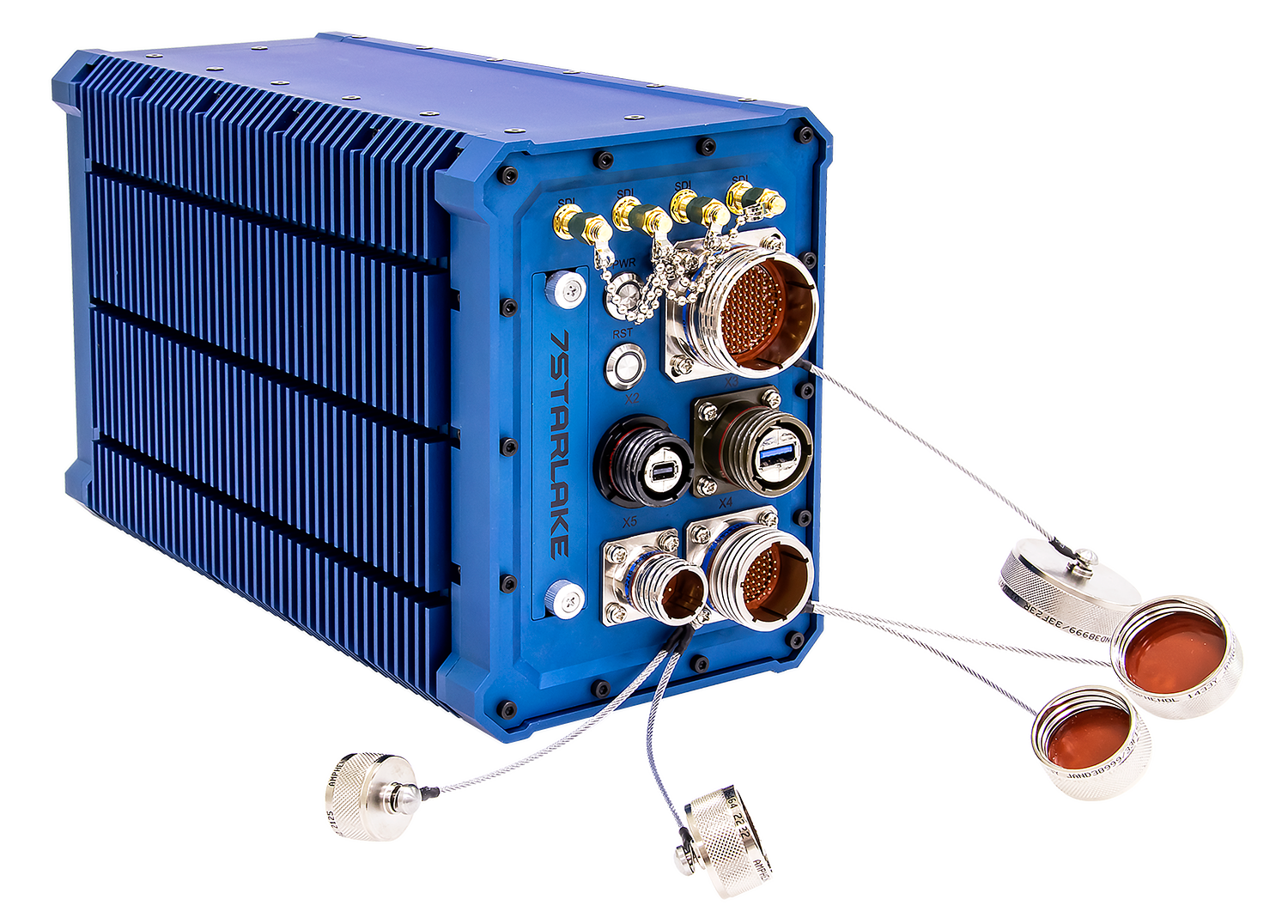 - X1: 3 x RS232 + 3 x RS422/RS485 + 2 x USB 2.0 + 4 x 1GbE LAN with 100 PIN D38999 connector