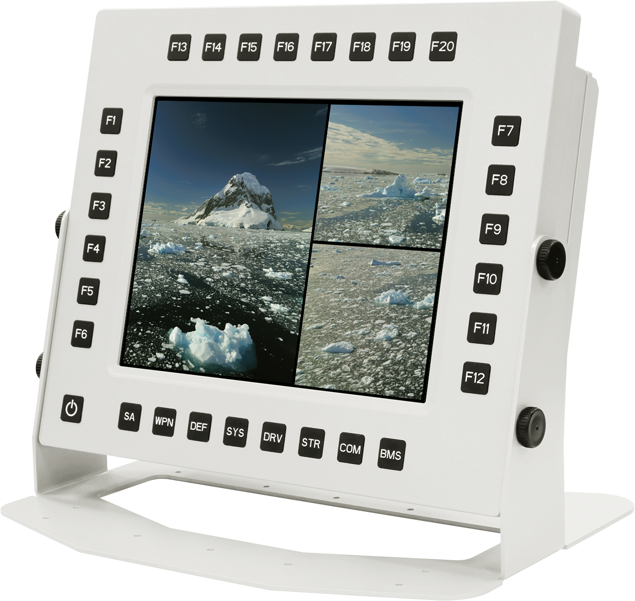 A programmable function key is capable of being programmed to perform a specific task. These specialty keyboards require extra software that enables these keys to be programmed. Cloud12-P28 is equipped with up to 28 ruggedized function keys made by rubber-tooling and with dimension 16 x 16 mm for each key ad, allowing multiple and flexible utility for users. Regardless the application in navigation or surveillance of marine, aviation and military ground vehicle, the programmable function keys are believed to provide convenient and efficient user surface under quick pace of critical battle mission.