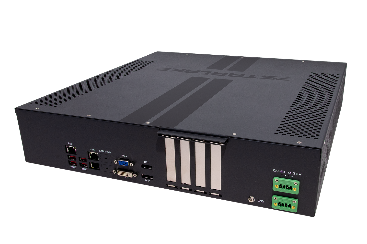 - 2 x LAN (RJ45), 4 x USB, 2 x DP, 1 x VGA, 1 x DVI-D