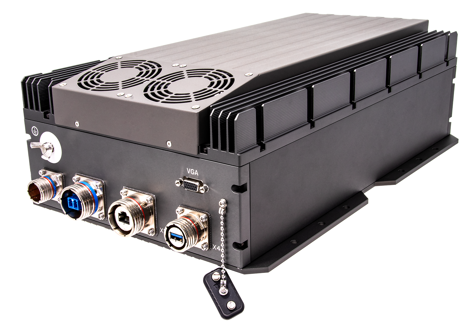 Military MXM-GPU System GPGPU AI Inference Computer with Intel® Xeon D-2183IT Processor, NVIDIA A2000, DDR4-3200 MHz 128GB RDIMM ECC, 2x2TB MLC support hardware erase for Fast & Mass Storage, IP65 rating, MIL-STD-D38999 Connectors, 18~36V DC-IN, Extreme Rugged operating temperature -20~+60°C